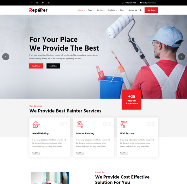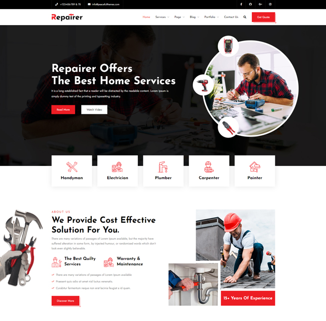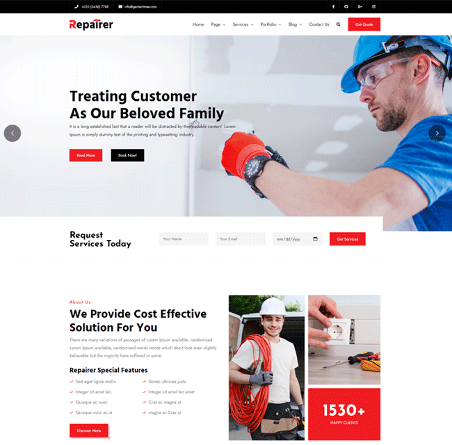 Get an optimal viewing experience across all major devices like desktop and mobile. The graphics are sharp as tack and your website looks just crisp and clear. Repairer is fully responsive and the images, videos, and text will scale down for the smaller devices.