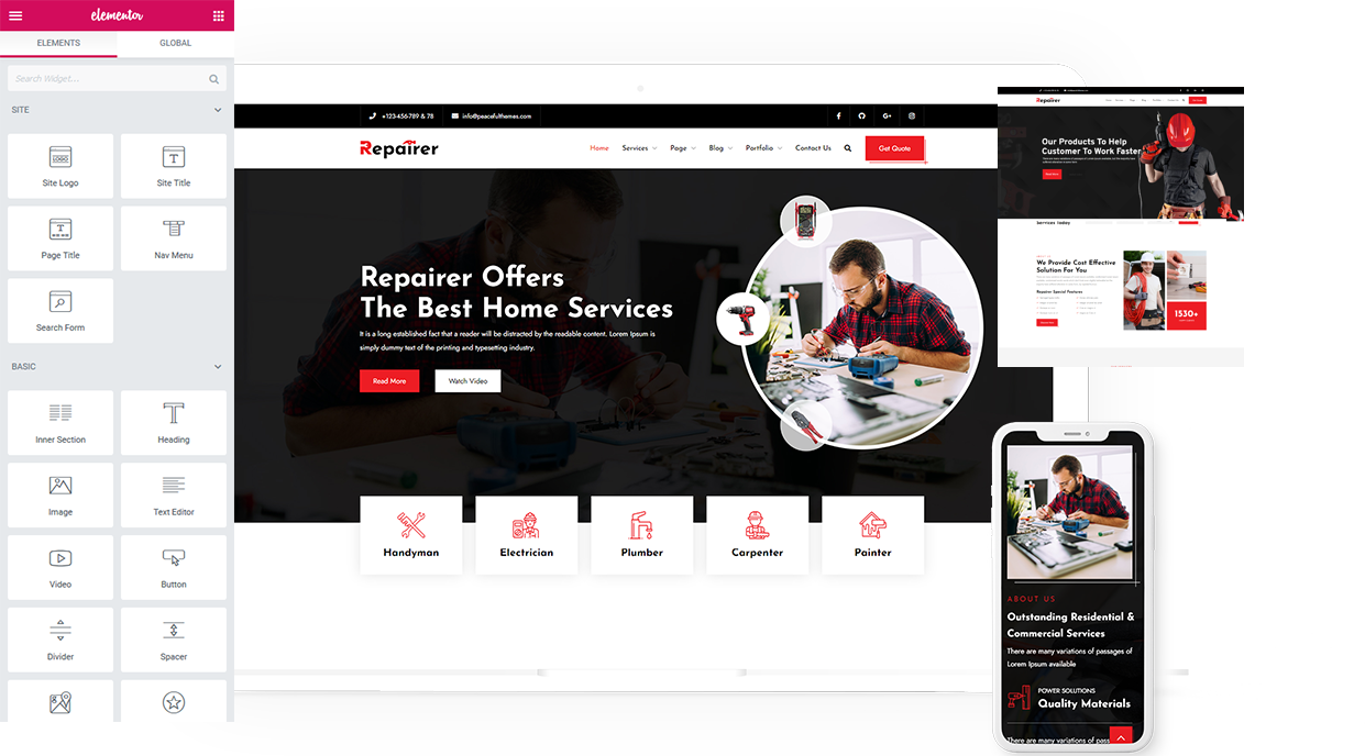 Elementor offers an intuitive interface and flexibility. It is one of the most user-friendly page builders for WordPress. Customize your Repairer template with ease using a set of additional elements.